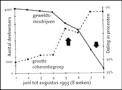 Het resultaat was dat de geweldsdelicten afnamen met ruim 23%, dus met bijna een kwart. Er waren